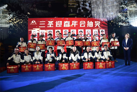 會場的三圣人很快樂,但也不能忘了依然在各個工地中堅守崗位的其他同事。通過現場視頻聯(lián)系,也向他們送去了新春的祝福。